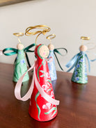 Papier mache angel ornament painted with acrylic paint and finished with an archival varnish.  Measures approximately 5.5" tall.