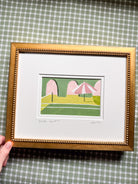 Painting measures 4x6 matted to an 8x10 custom double mat, ready for framing. Frame shown is not included.