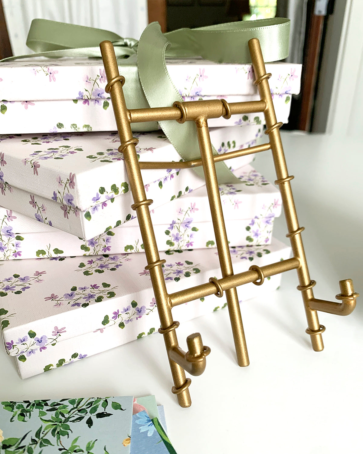 Brass easel holds any series of Camilla Moss affirmation or scripture cards, and will hold ALL cards in the series together!