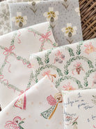 Brighten your kitchen with linen cotton tea towels featuring original watercolor artwork by Camilla Moss. Measuring 21" x 28" and finished with a coordinating striped trim, each towel blends beauty with everyday function. The soft, durable fabric is perfect for drying dishes, lining a bread basket, or adding a decorative touch to your kitchen.