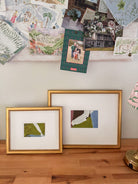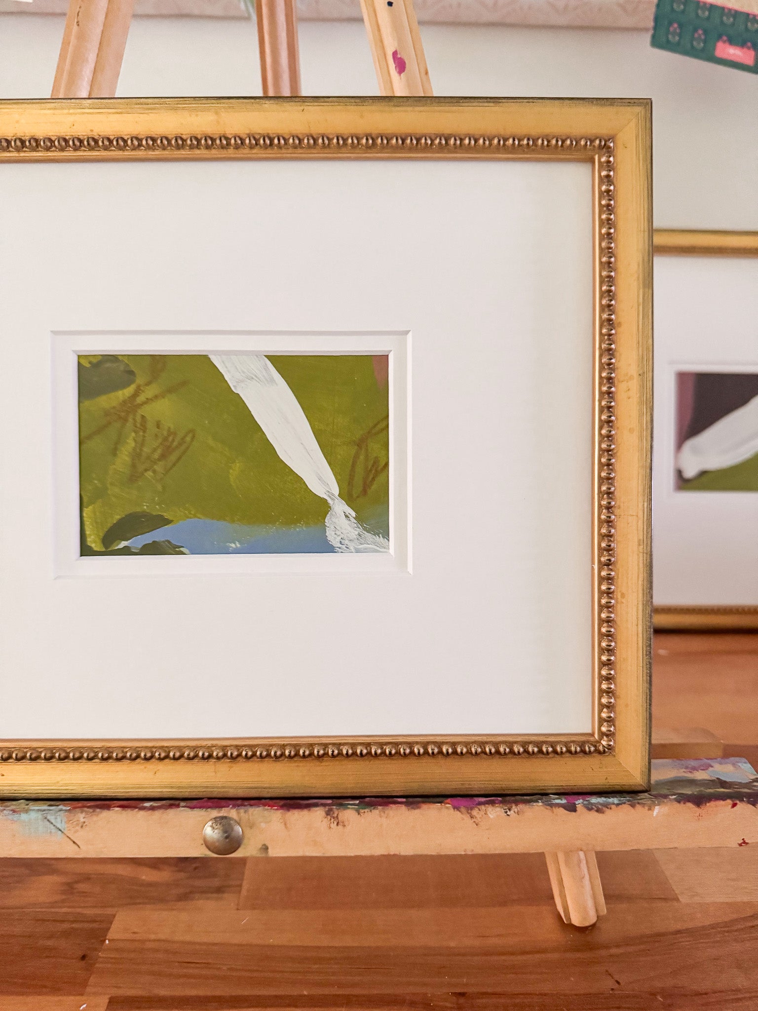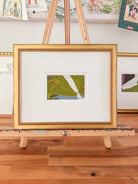 This original work by Camilla Moss is a acrylic abstract painting on fine art watercolor paper matted to a custom double mat measuring 8x10, ready for framing. Frame shown is not included.