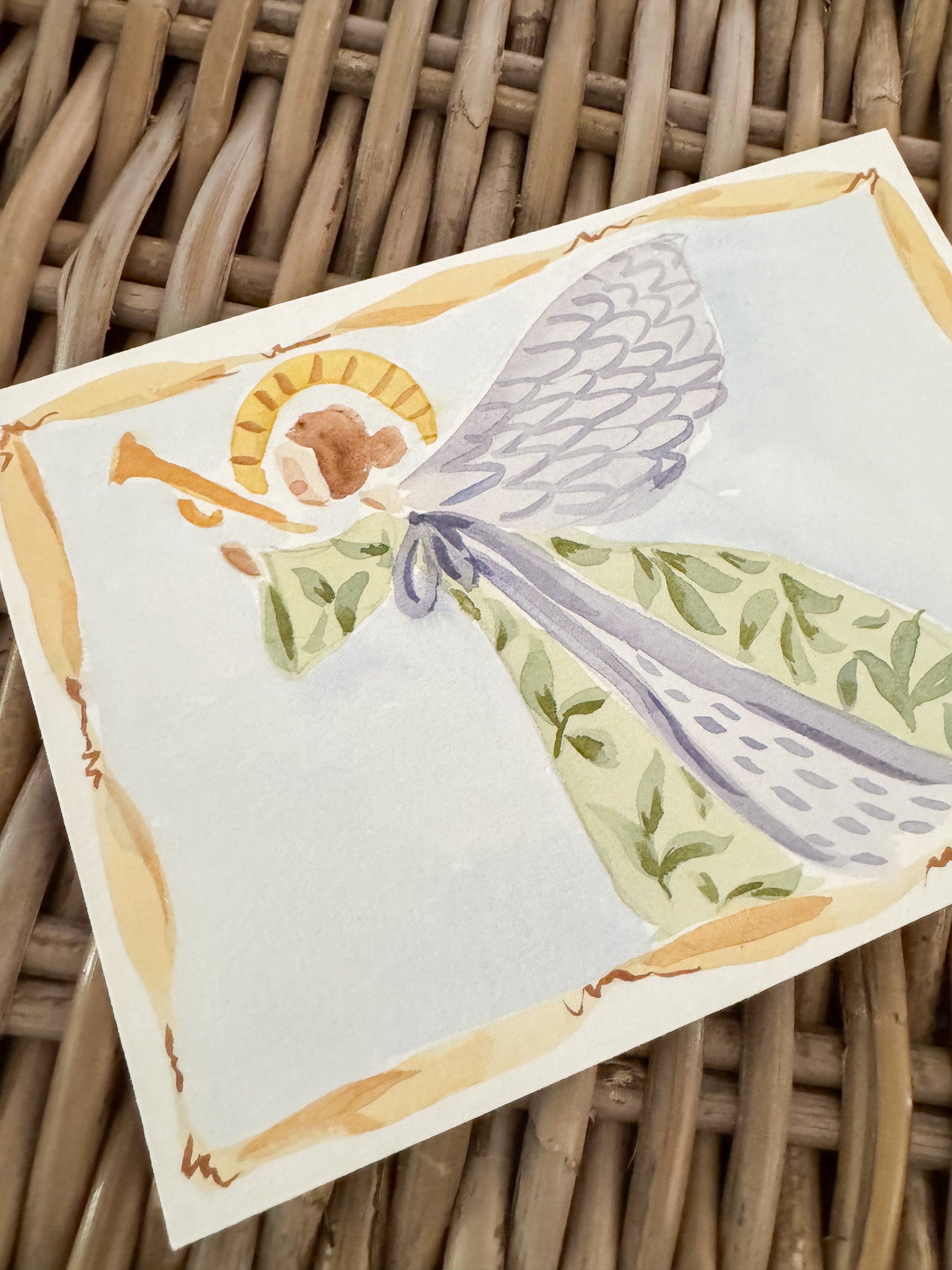 This original watercolor angel is painted on 5x7 fine art watercolor paper, featuring delicate pattern work that frames the figure beautifully. Each piece carries a gentle sense of peace and light, making it a meaningful addition to your home or a thoughtful gift for someone you love.