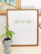 This original work by Camilla Moss is a watercolor floral and bird painting on fine art watercolor paper, measuring 2.5 x 11. Mat and frame not included.