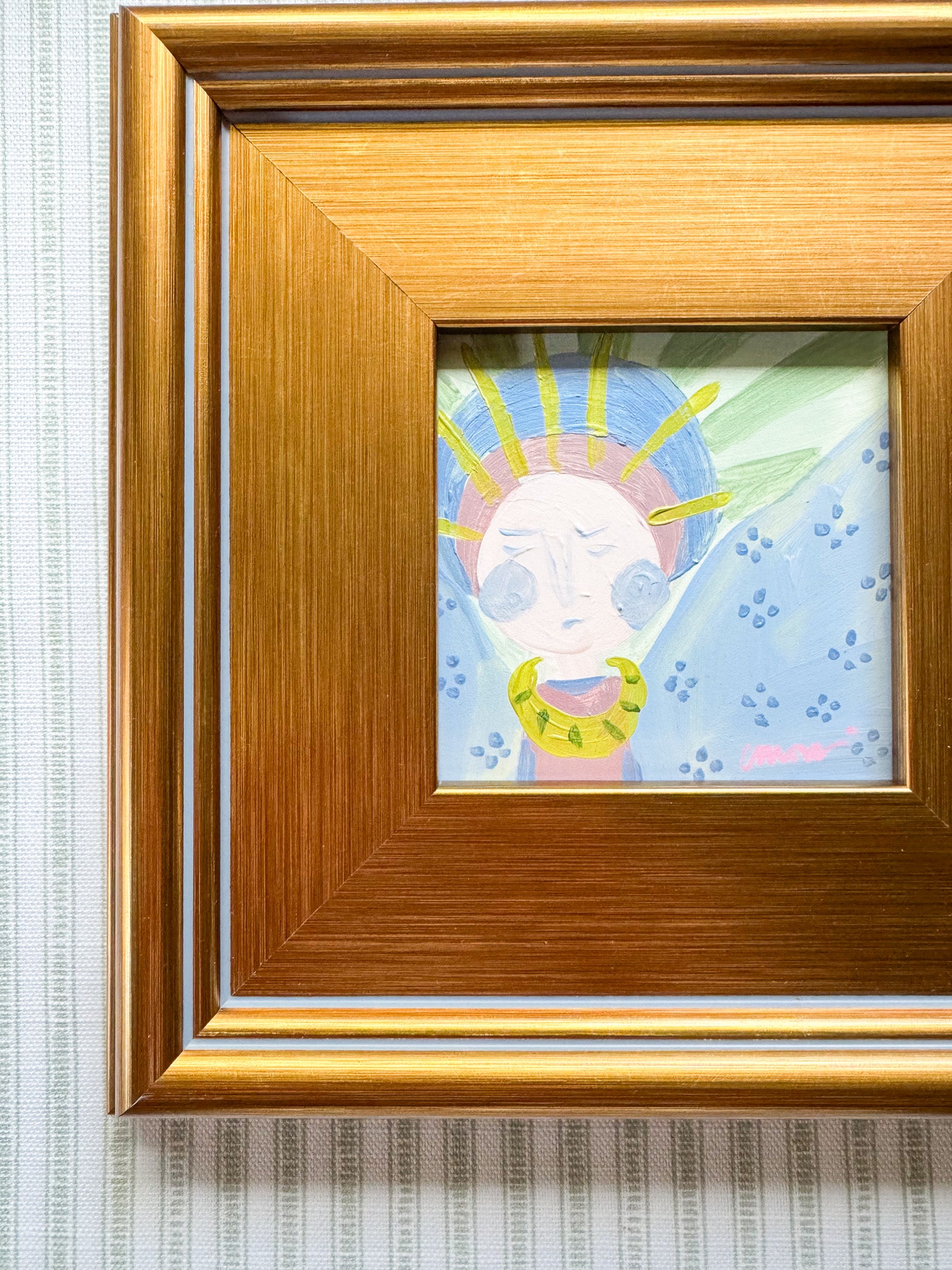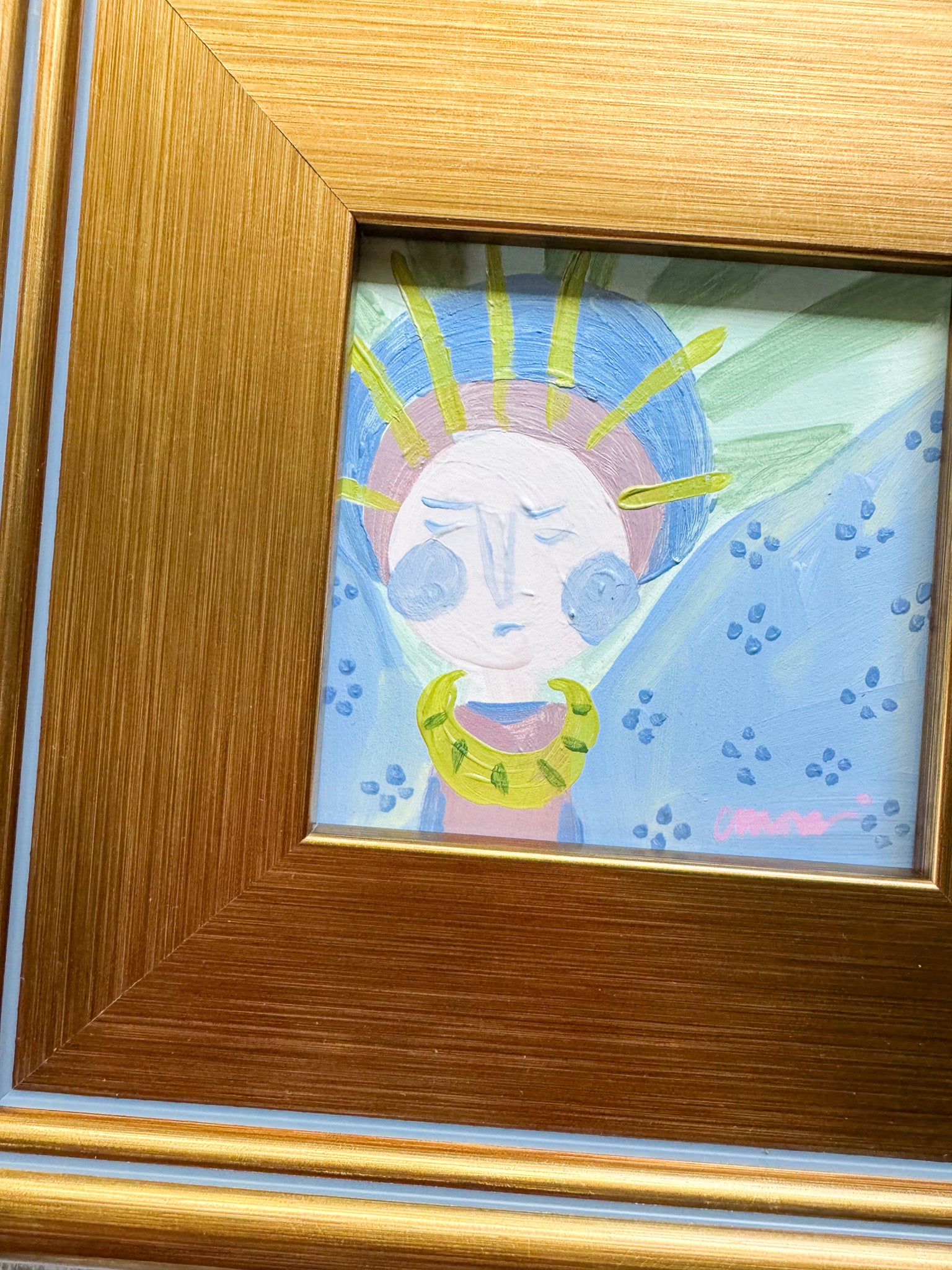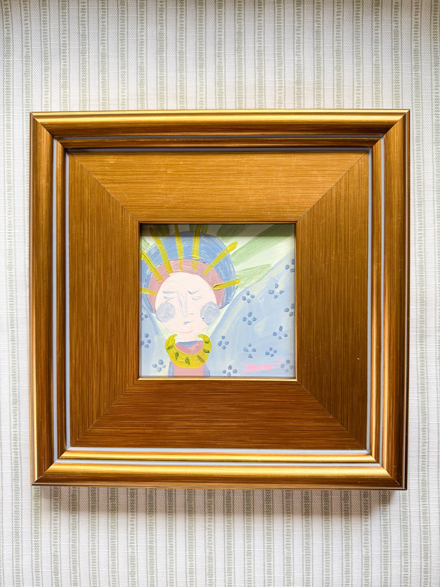 Painting measures 4x4 framed in gold frame measuring approximately 9x9.