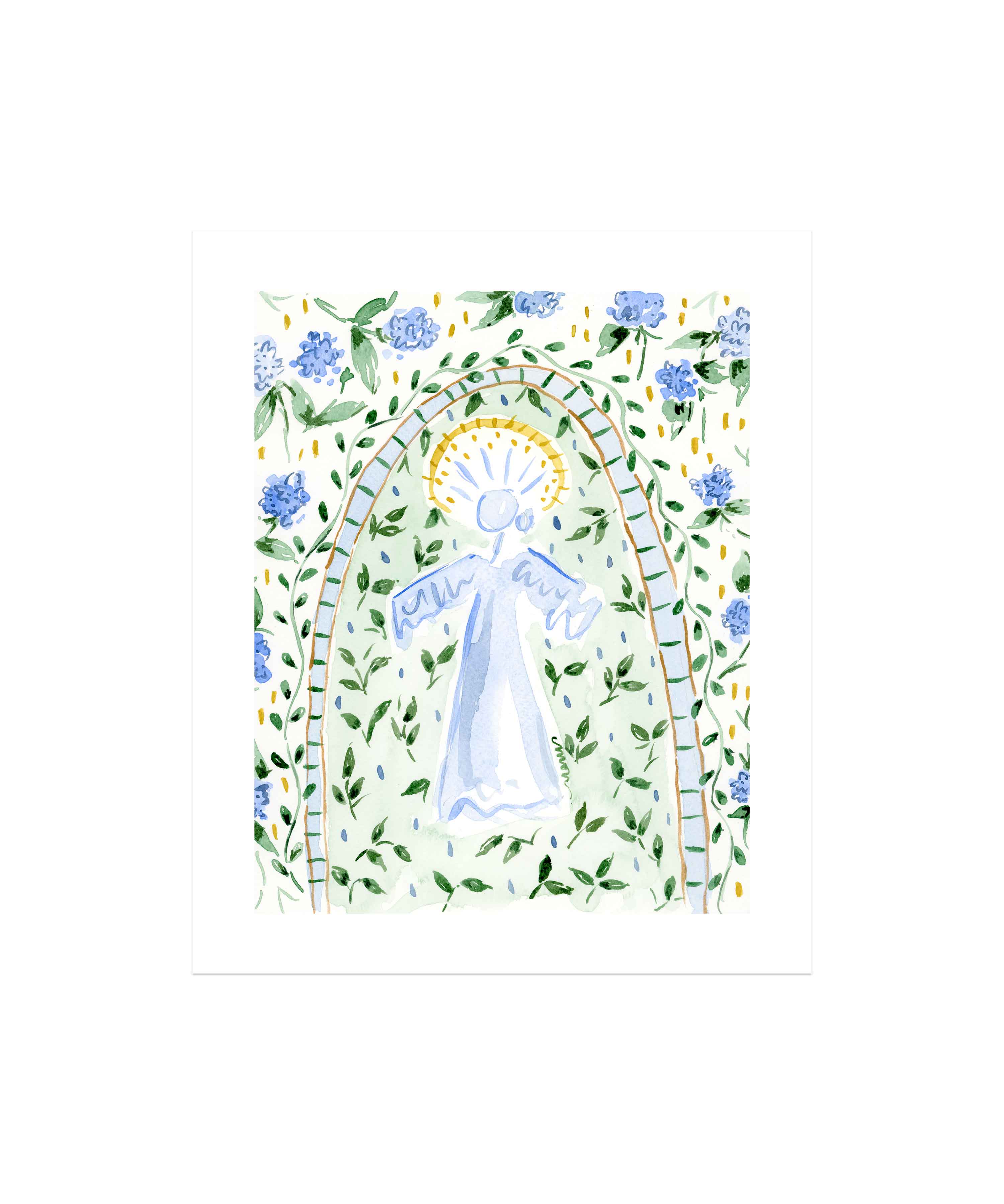 Graceful Angel giclee art print on bright white archival quality paper with a subtle watercolor-like texture. Print measures 10 x 12 inches.