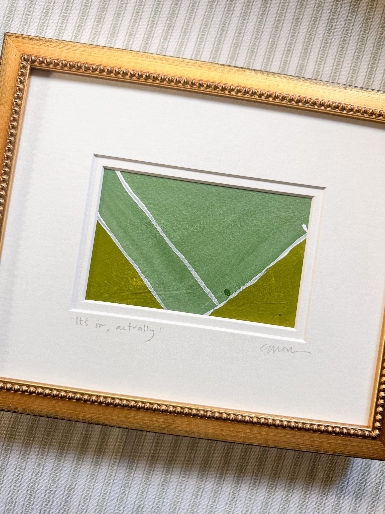 Painting measures 4x6 matted to an 8x10 custom double mat, ready for framing. Frame shown is not included.