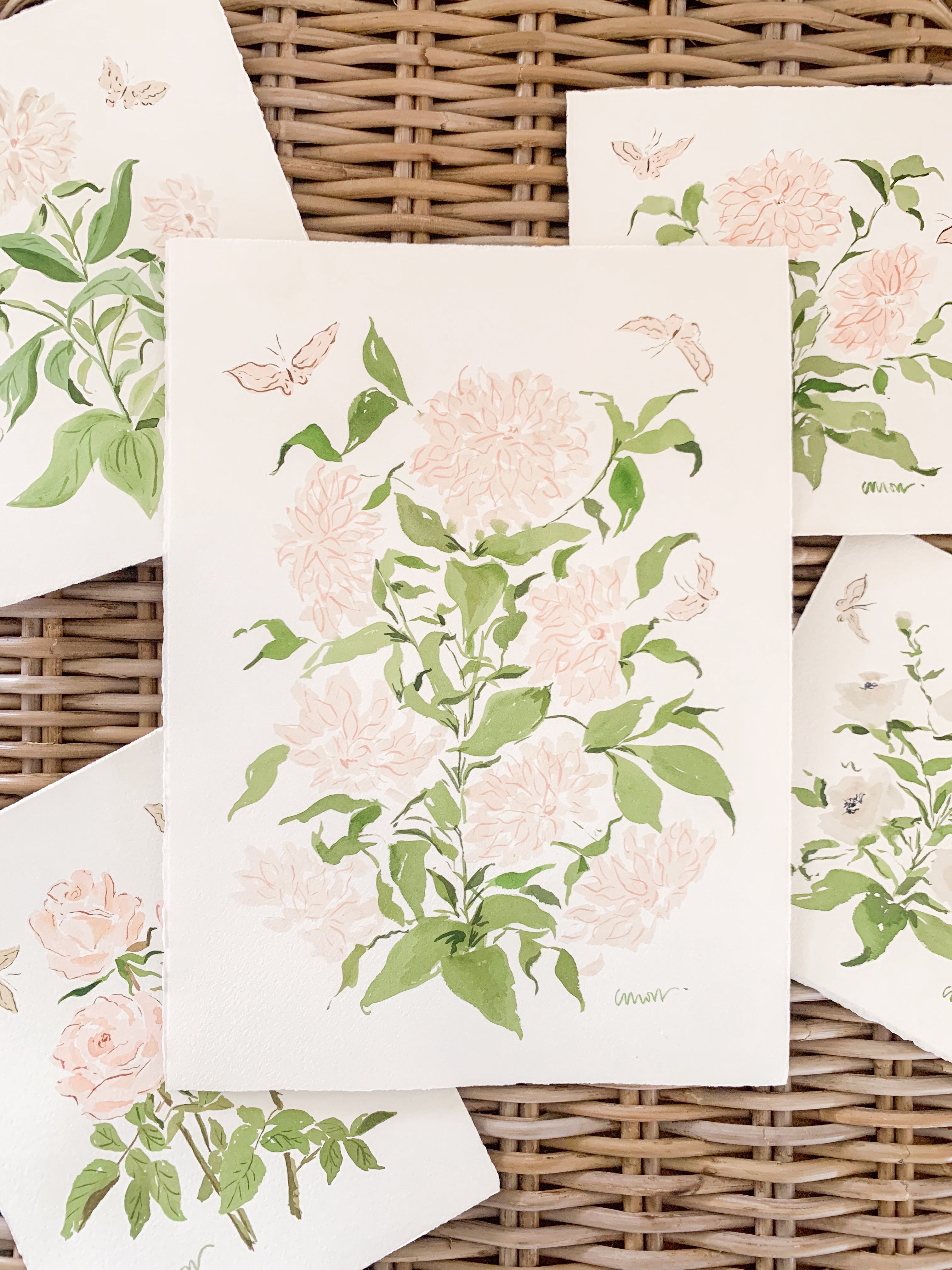 This original work by Camilla Moss is a botanical watercolor painting measuring approximately 11 x 15 on Arches watercolor paper painted in March 2024 as part of the Spring Garden collection.