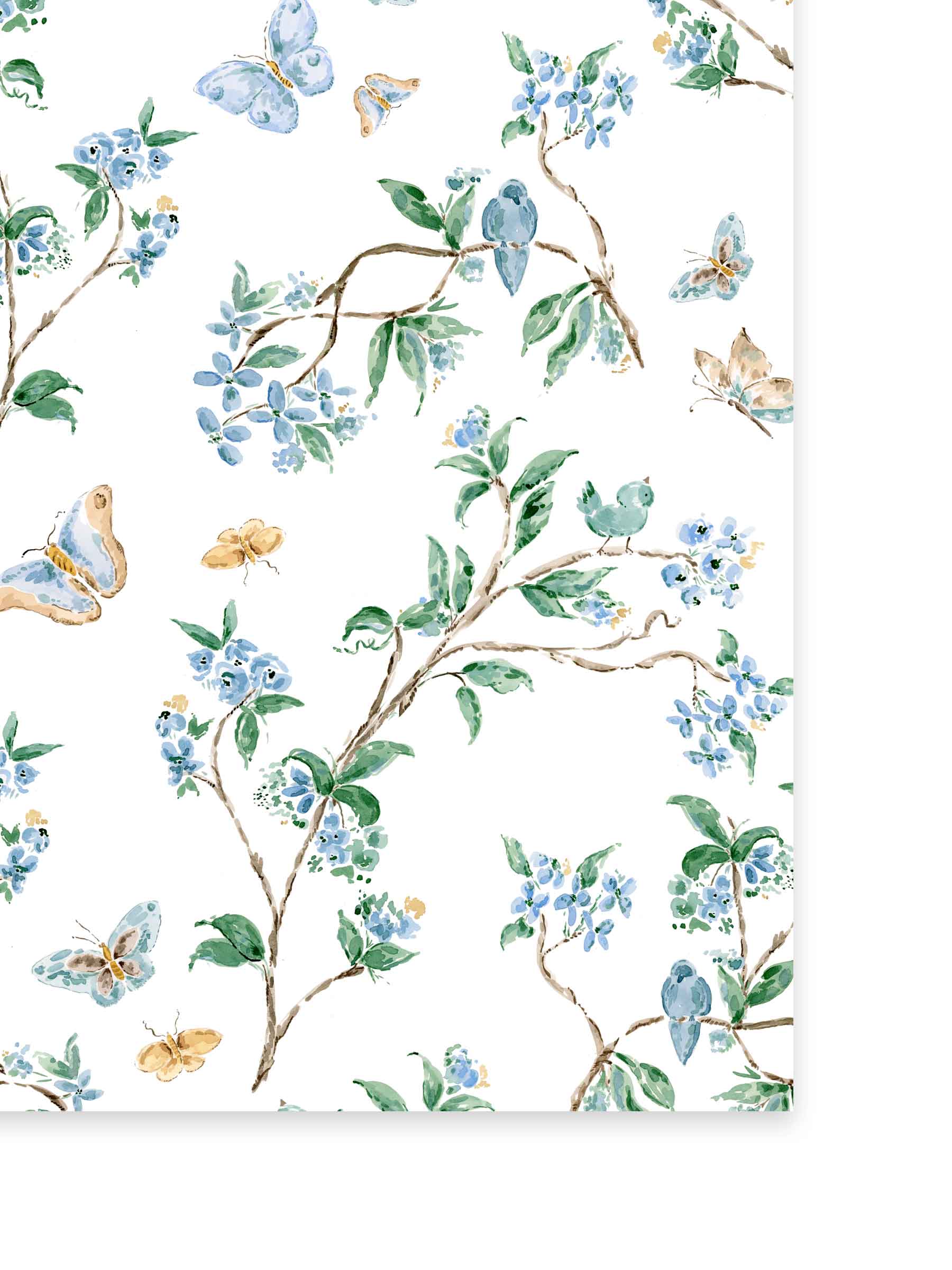 Our wallpaper collection features original watercolor artwork by Camilla, thoughtfully translated into pattern to bring a charming, artful presence into your home.