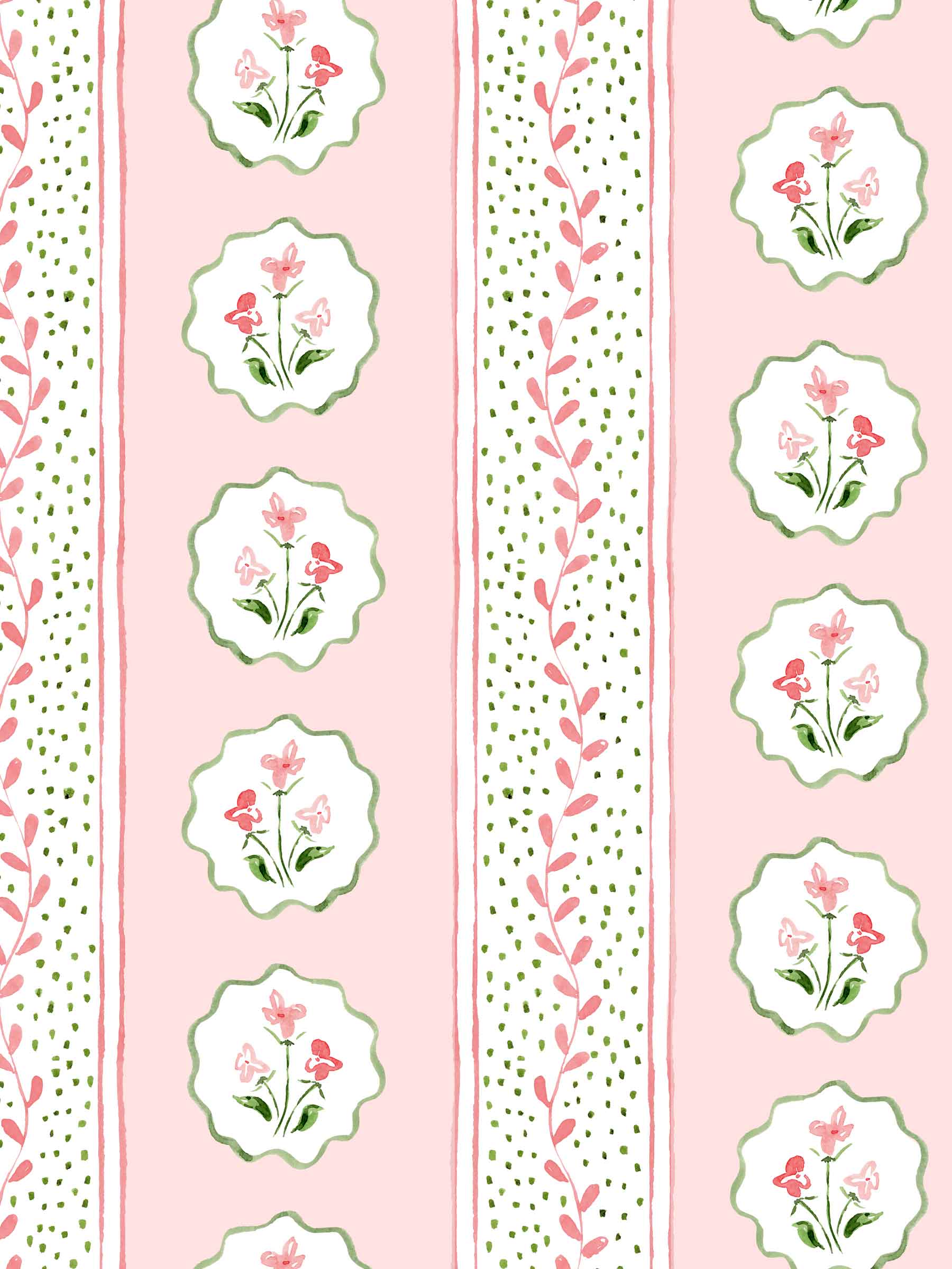 Our collection of wallpaper and textiles features original paintings by Camilla and highlights the soft, charming and joyful design that define her fine watercolor art. The wallpaper is delivered untrimmed and is hung with standard wallpaper paste and professional installation is required.
