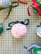 This hand-painted paper maché ornament is created with acrylic paint and sealed with an archival varnish for lasting beauty. Each piece is finished with a coordinating ribbon and measures approximately 3.5" in diameter.