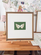 This original work by Camilla Moss is an acrylic butterfly painting on canvas matted and framed in a custom gold frame, ready for hanging. Frame measures approximately 15.5" x 15.5".