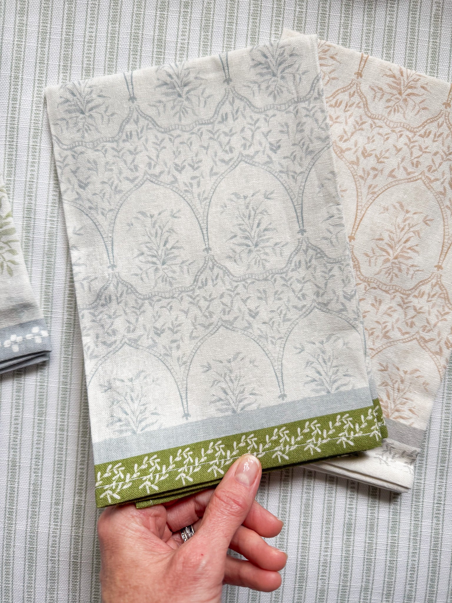 Napkins measure 18 x 18 inches and come tied in a set of 4, ready for your table or for gifting.