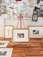 This original work by Camilla Moss is a acrylic abstract painting on fine art watercolor paper matted to a custom double mat measuring 8x10, ready for framing. Frame shown is not included.