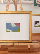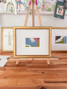 This original work by Camilla Moss is a acrylic abstract painting on fine art watercolor paper matted to a custom double mat measuring 8x10, ready for framing. Frame shown is not included.