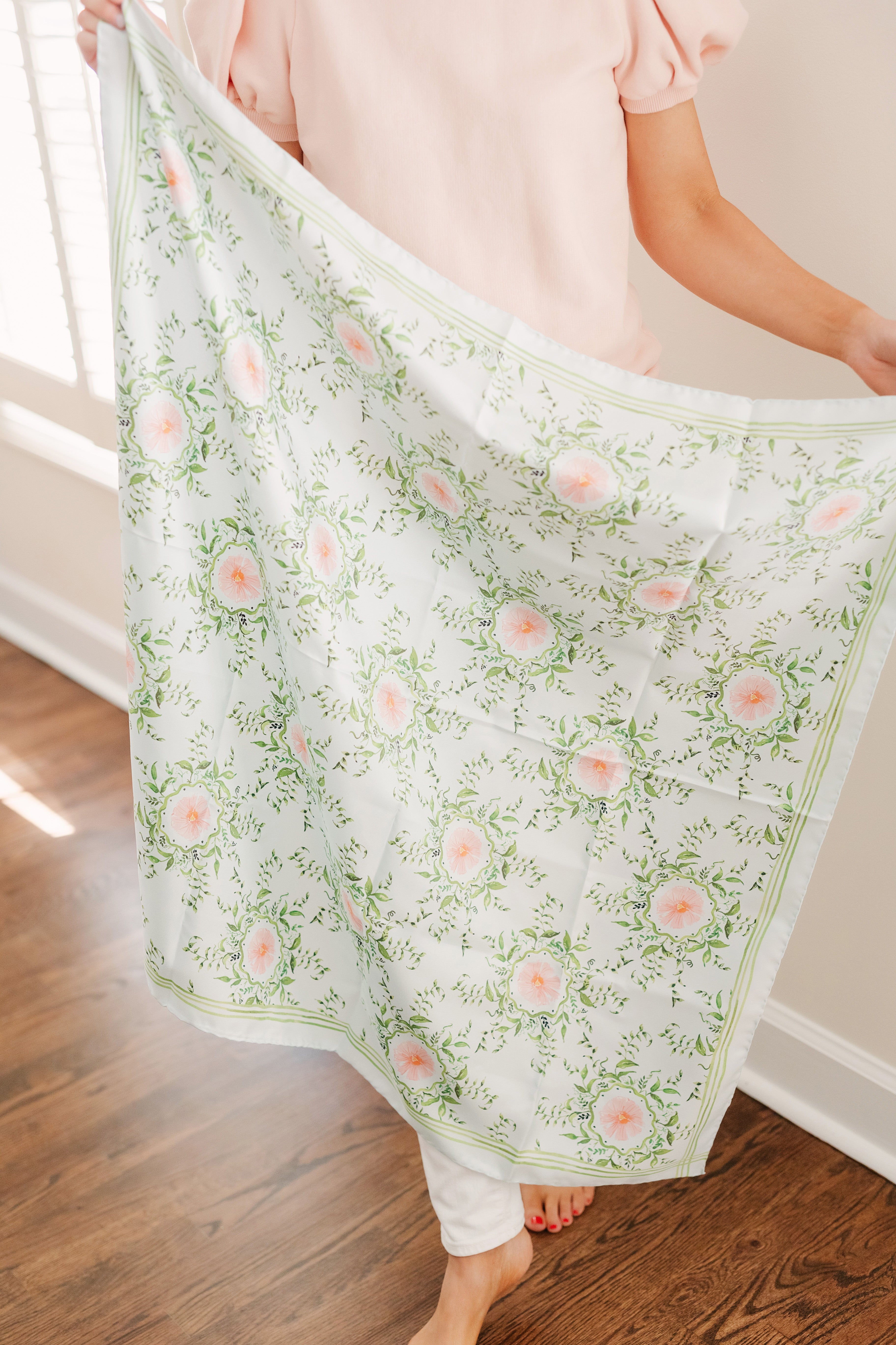 Our 100% silk scarf makes the perfect accessory for your outfit or gift for someone special! Our scarf can be tied in many ways around your neck or tied to your favorite handbag for a dash of personality!