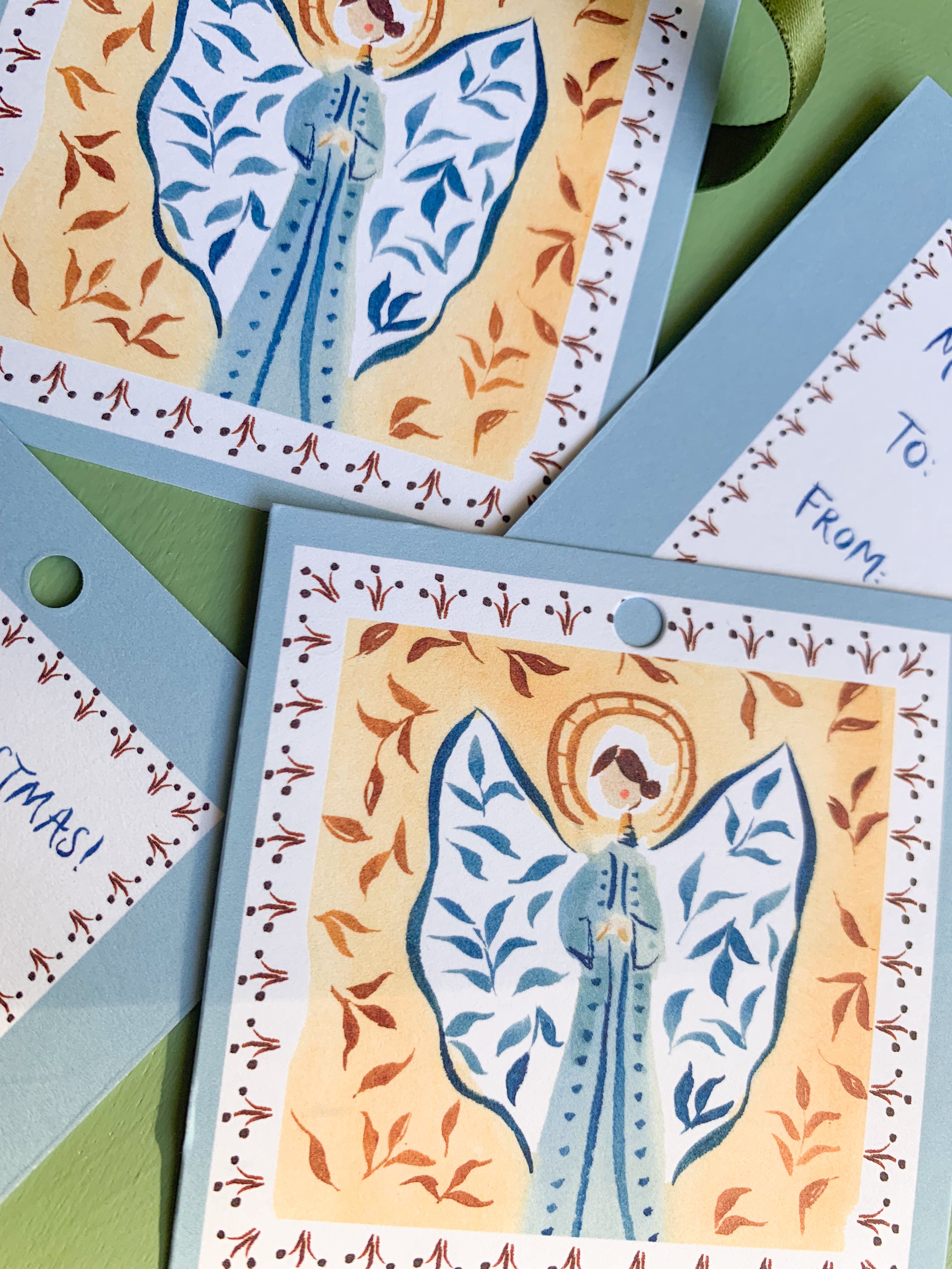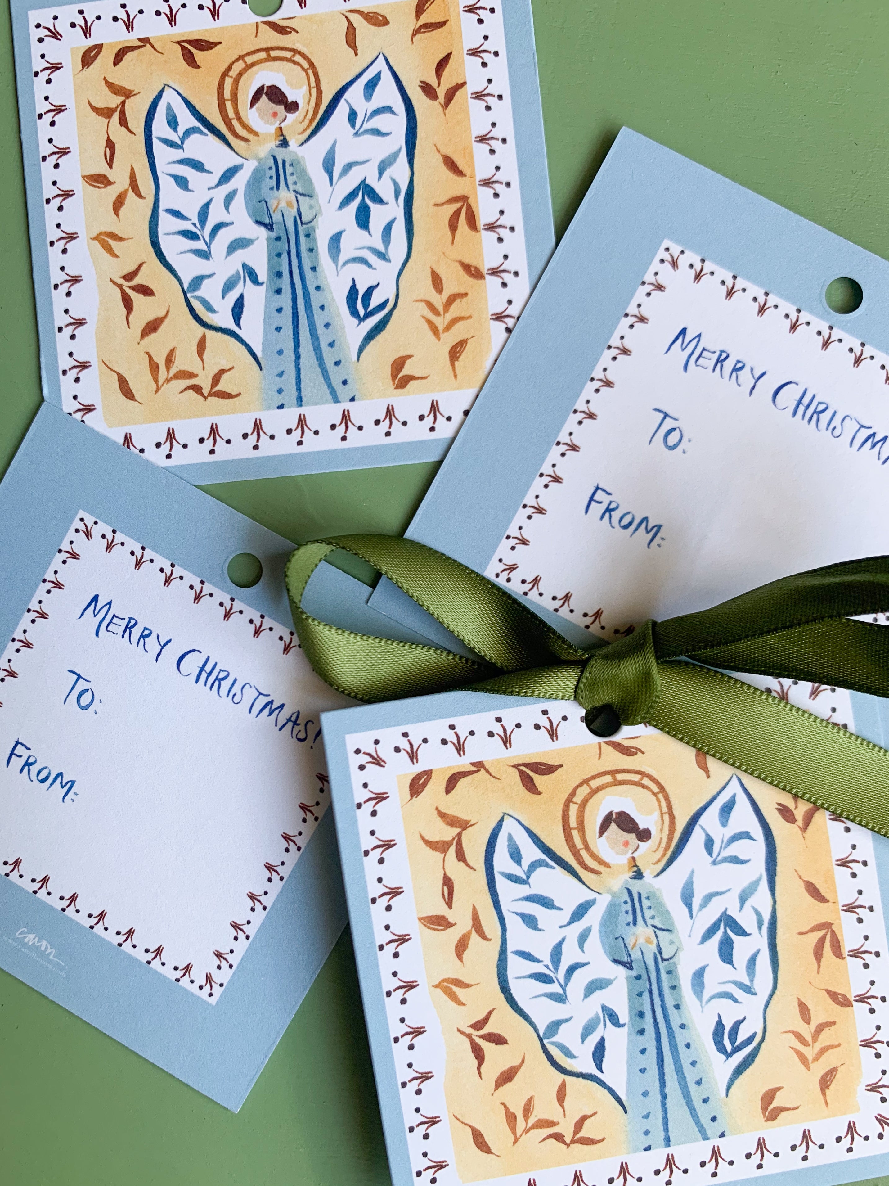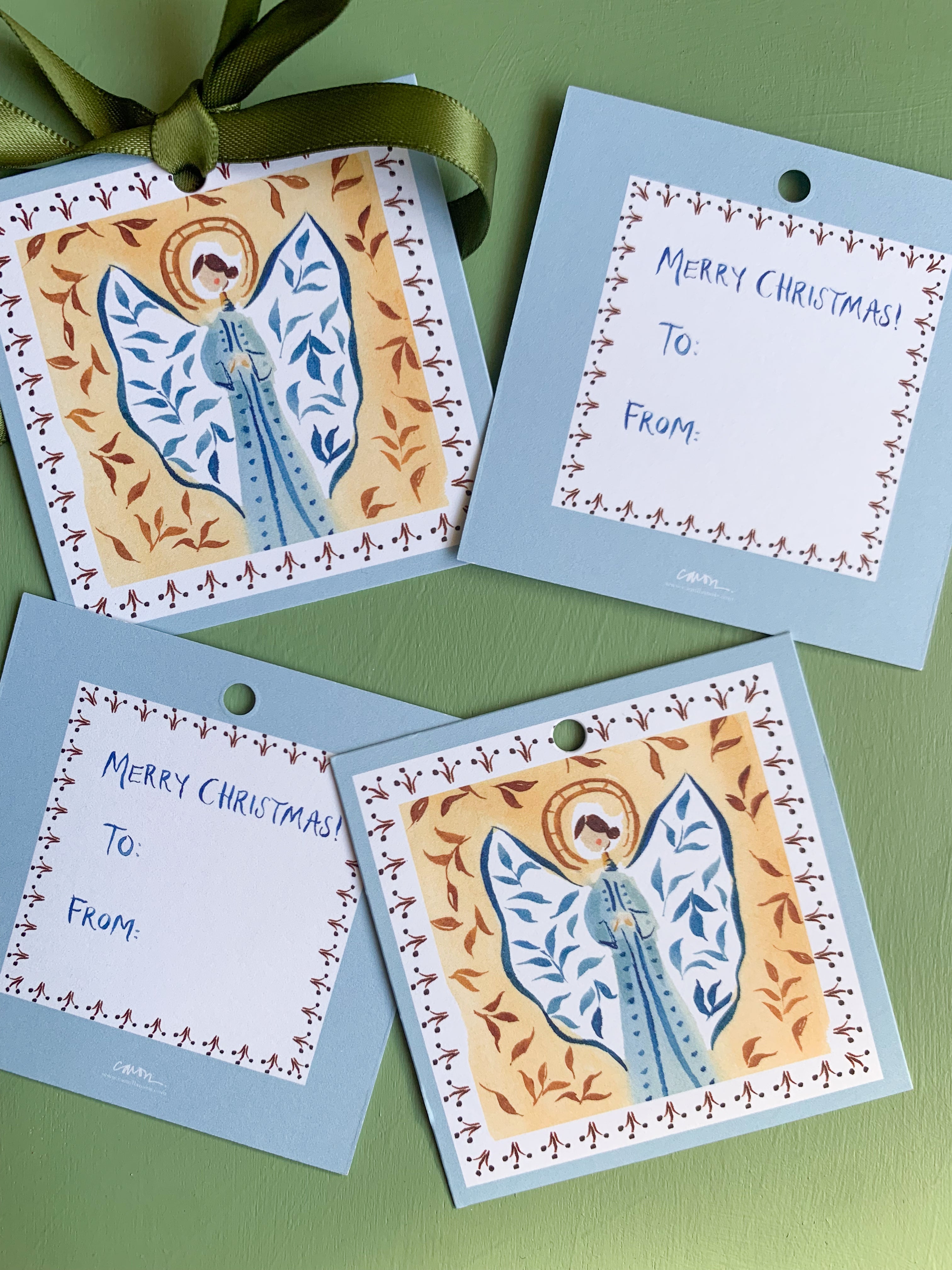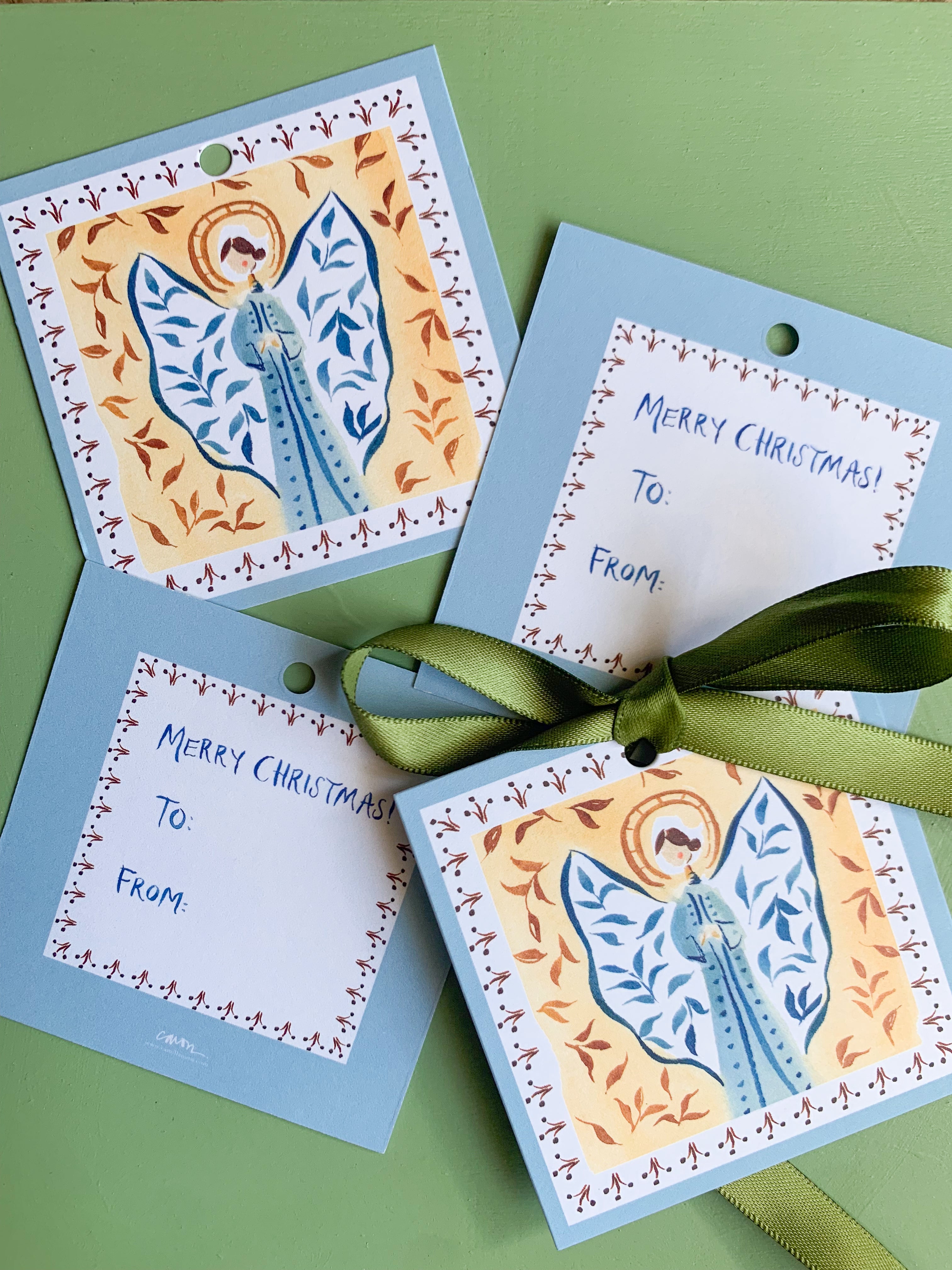 Tags for your gift giving needs! Our gift tags featuring our joyful angel watercolor will be a delightful addition to your gift this holiday season!